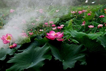 “小荷才露尖尖角,早有蜻蜓立上頭”,每到夏季便是荷花盛開的時節,素有“凌波仙子”美譽的荷花相繼綻放。近日,四川廣漢荷花開,白霧繚繞似仙境,碧綠的荷葉在微風中層層起伏,一朵朵粉白的荷花掩映其中,時而嬌羞頷首,時而亭亭玉立,千姿百態、楚楚動人,猶如一幅夏日荷塘水墨畫,真可謂“接天蓮葉無窮碧,映日荷花別樣紅”。