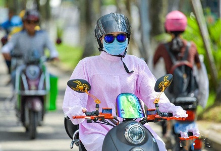 近日,海口市民在高溫下“全副武裝”出行。海南省氣象臺繼續(xù)發(fā)布高溫四級預(yù)警,五指山以北大部分地區(qū)出現(xiàn)37度以上的高溫天氣,海口被熱浪侵襲似火爐,路上行人使出各種防曬神器。