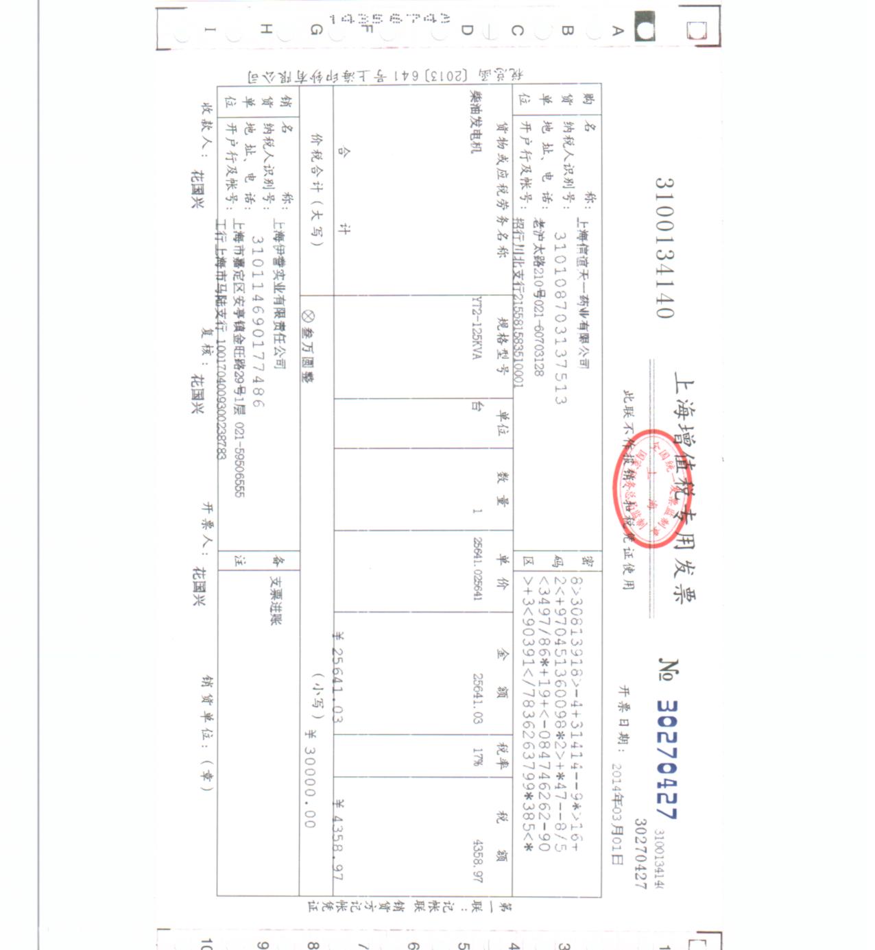 上海信誼天一藥業有限公司——伊藤發電機再次采購