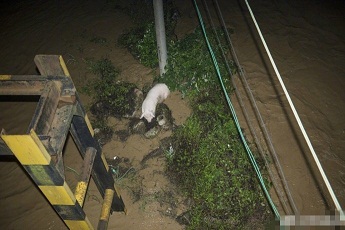 近日,湖南寧鄉東溈東路與創業大道交會處,十余名交警在此設崗執勤。當地的記者注意到,橋下溈水河水流湍急,一些房屋被沖毀,一些只看能到屋頂,現場一名執勤人員看見一只豬趴在露出水面的石頭上躲避洪水,真可謂“豬堅強”。