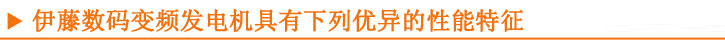 第一家中國動力供應商研制了數碼發電機系列產品。首次將控制模塊技術應用于發電機組,因此,與同功率等級的傳統發電機組相比,數碼發電機組更輕巧,電力更潔凈,排放更低,是真正的綠色環保型發電機。無論你是開車到郊外遠足還是野營海邊,您只需要輕松的提上一臺伊藤數碼發電機,即可使用您的小型家用電器,享受美妙的戶外生活。伊藤數碼發電機可靠的性能,輕巧的機身,高品質的電源,令機組成為夜市小型商家的最愛,更是現代家庭理想的應急電源。燈火闌珊處,也許正有一臺伊藤數碼發電機靜靜的運行著。