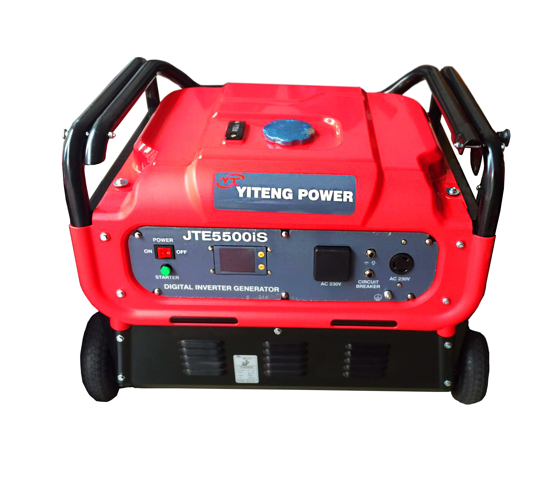 伊藤新款數碼變頻發電機,型號為JTE5500iS。此款數碼機采用紅黑相間的配色設計,穩重而大方。此款數碼機為單相和三相兼備,擁有自動過載保護裝置,機器底部附有可轉換萬向輪,方便機器實現移動作業;分為手啟動和電啟動兩種,如果用戶有需求,還可配置遙控啟動;與此同時,機器兼有軟啟動設計,可以很好地緩沖啟動,避免機器受損;此系列的數碼機噪音低,持續運行時間長,體積小巧,質量輕便,便于移動和攜帶;當機器機油不足時,機器可以自動報警;發動機類型為OHV、單缸、風冷、四沖程;用戶可以自行選擇雙機并聯,也可選擇單獨配置的ATS自動轉換開關。此系列的數碼機的保修期為一年。
